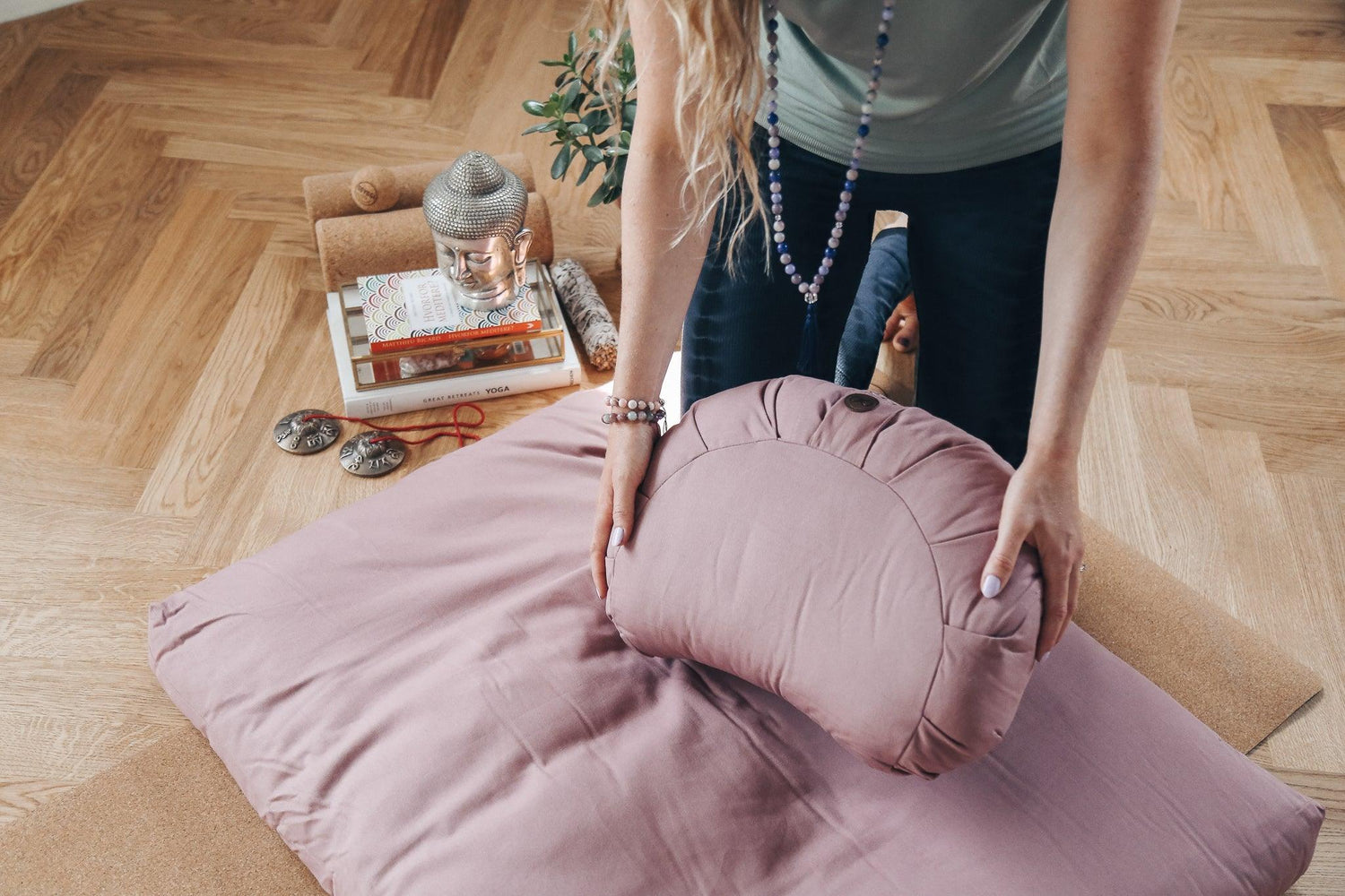 - Korrekt siddestilling: Ved at bruge en halvmåneformet pude kan du opnå en naturlig holdning, der reducerer trykket på knæene og lænden, hvilket gør meditationen mere komfortabel og længerevarende. Den er dog lavere end vores runde meditationspude, og vil være at foretrække, hvis du er smidig i hofteleddene.