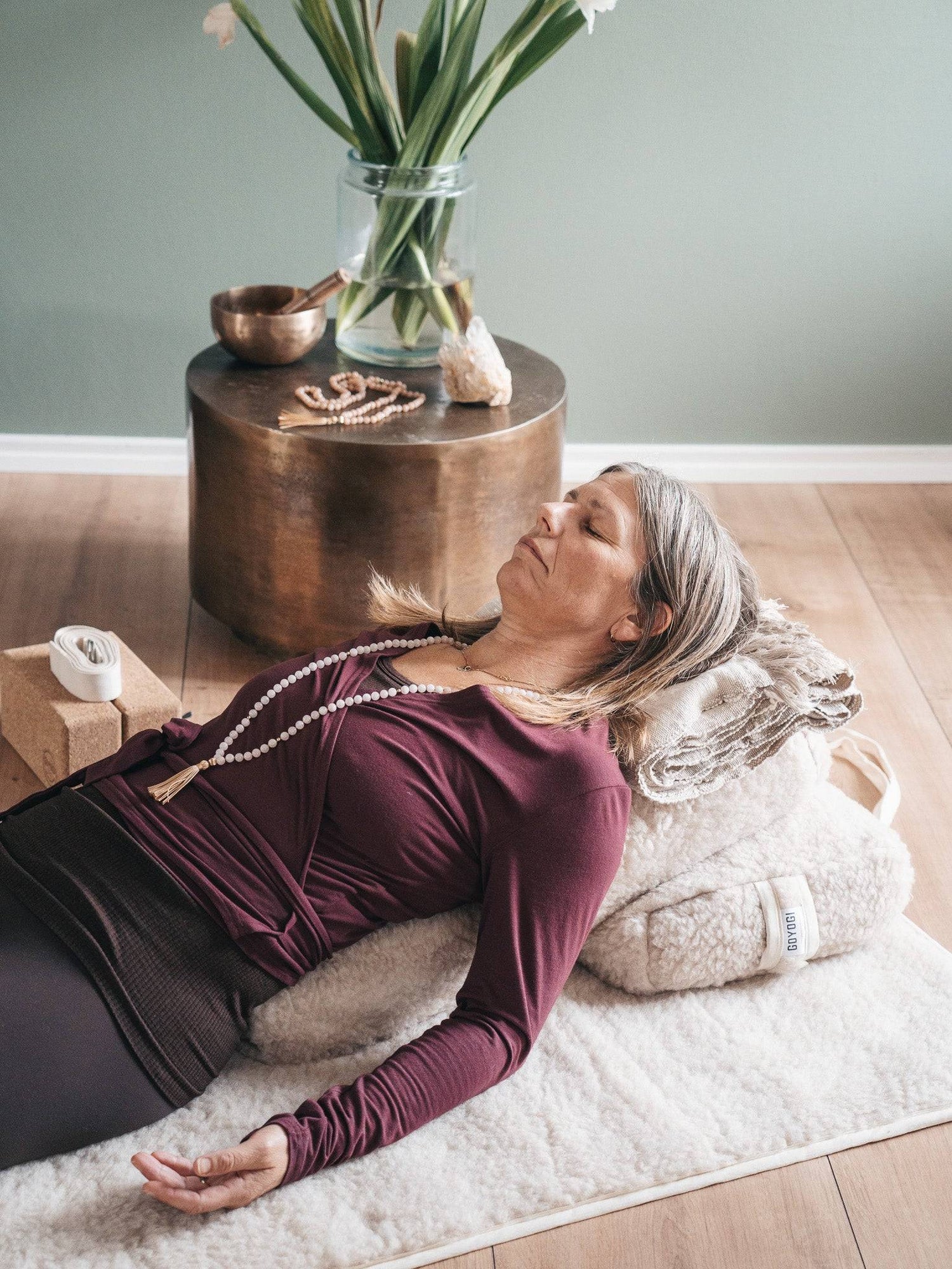 En lang. rektangulær yoga bolster adskiller sig fra den klassiske, runde yogapølle ved at give en bredere og mere jævn støtte – ideel til dyb hvile. Vores Release bolster egner sig særligt godt til: