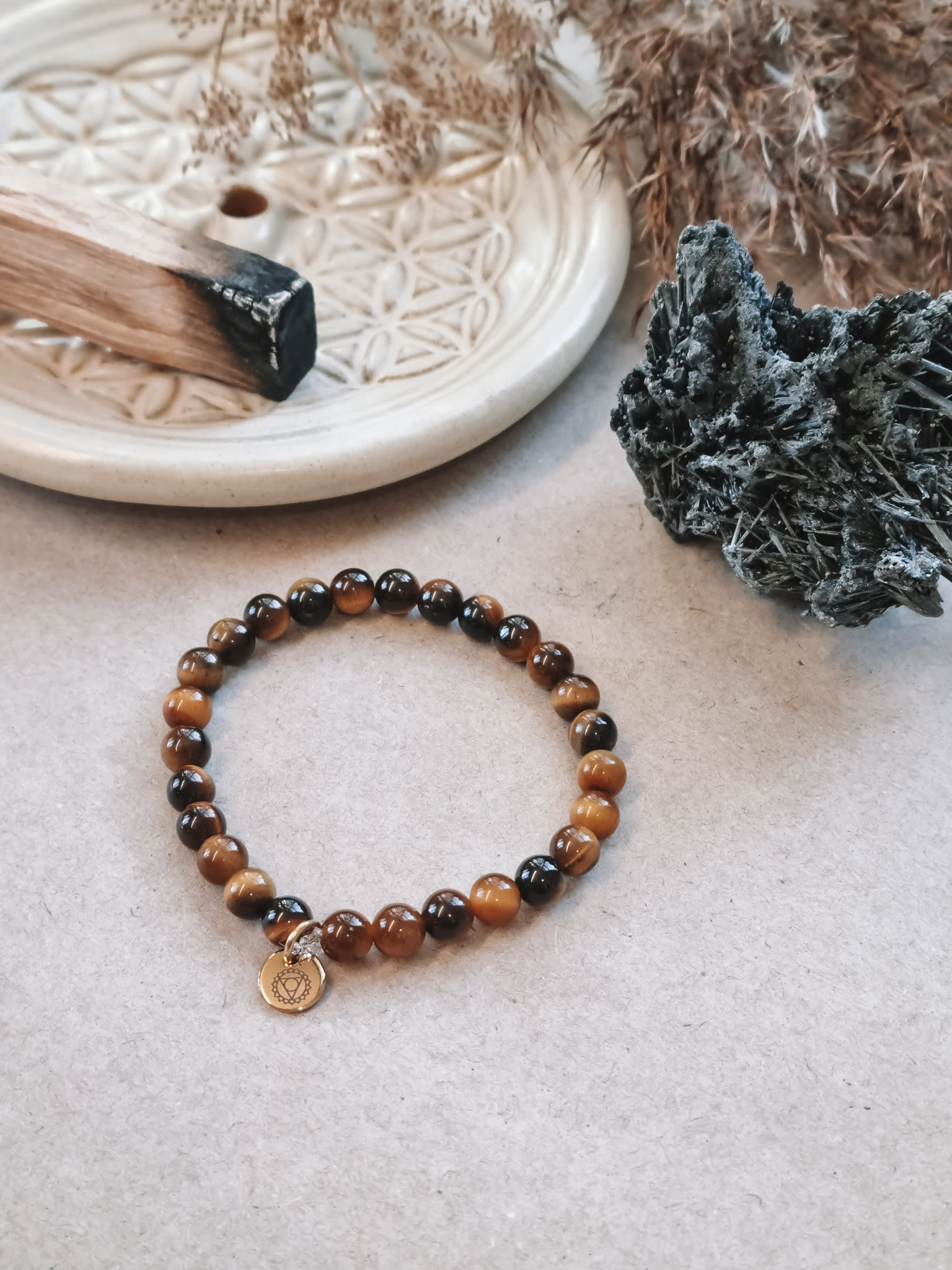 Bamboo jasper is a fantastic stone. Its colors range from deep brown, over golden orange to gentle pink and white. It therefore relates to both upper and lower chakras and can both ground you and lift you far into the universe on your spiritual journeys. Bamboo jasper can also be used for physical manifestation and healing. It will help you visualize and think clearly, as well as find the creativity needed to really manifest the changes you want. Furthermore, the gentle energies are good tools against stress and a busy everyday life. Bamboo jasper is also said to be a very protective stone and should be really good in connection with meditation, healing and spiritual rituals.