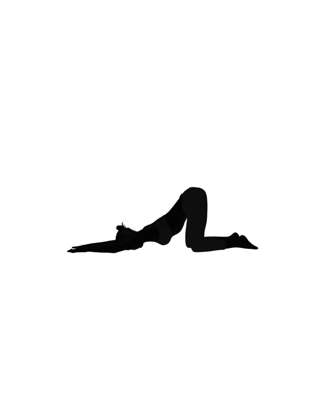 - Sådan gør du: Sid på hælene, og fold overkroppen fremad med panden mod måtten.