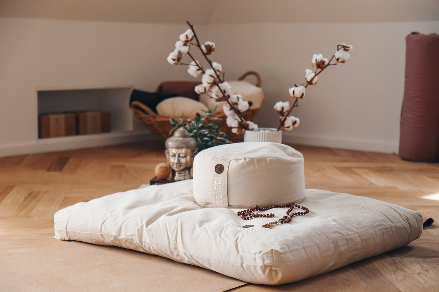 En god måde at afgrænse dit space på er fx ved at bruge en zabuton - den store gulvpude. Den skaber nærmest automatisk et afgrænset rum for din meditation.