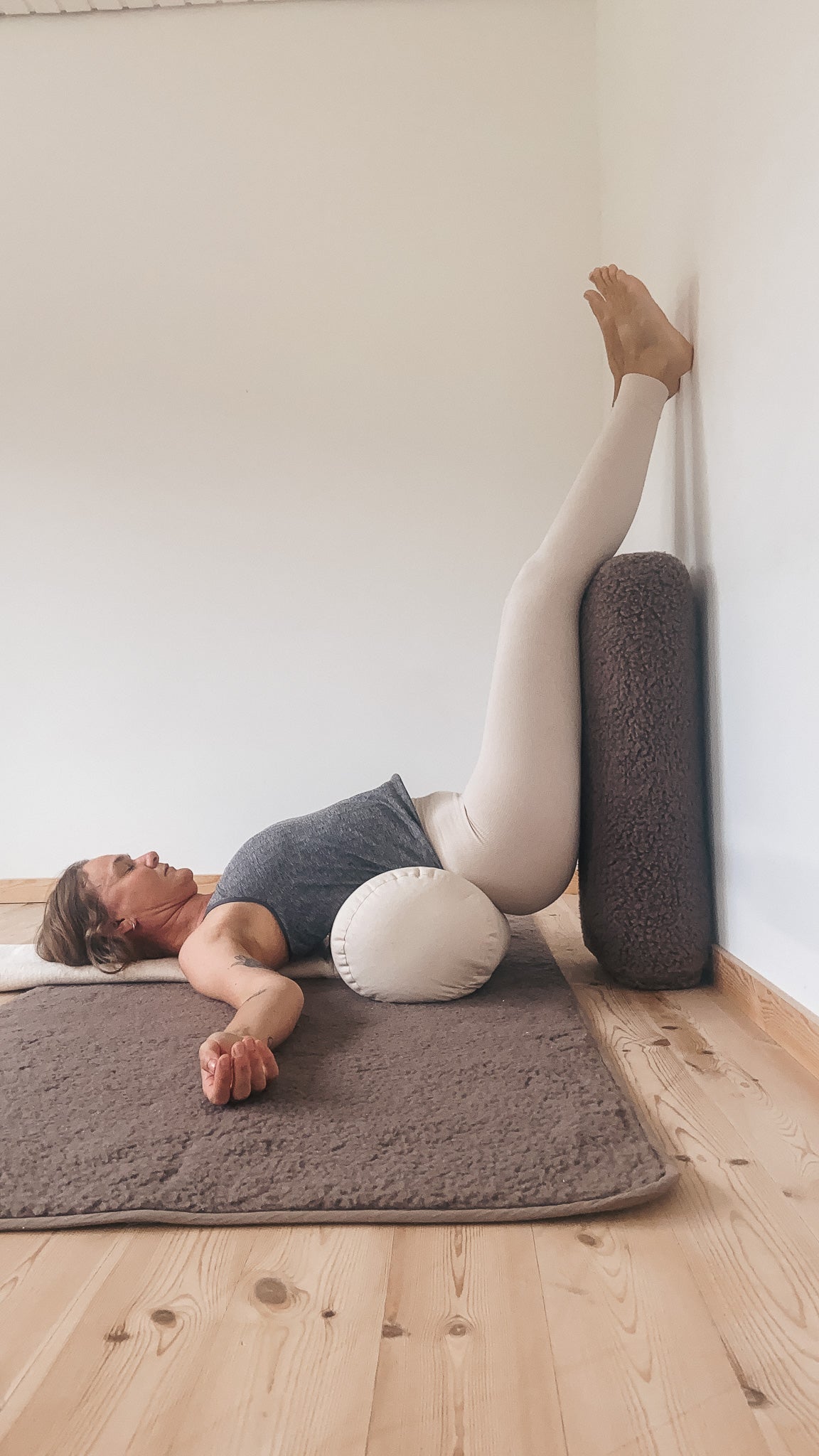 Måske har du allerede luret den. Men sætter du ovenstående 3 stillinger (Supta Baddha Konasana,Viparita Karani og Savasana) sammen i et flow, har du en vidunderlig Restorativ Yoga sekvens for hjerte, liv og sjæl. Alle stillinger med god støtte til hele dig.