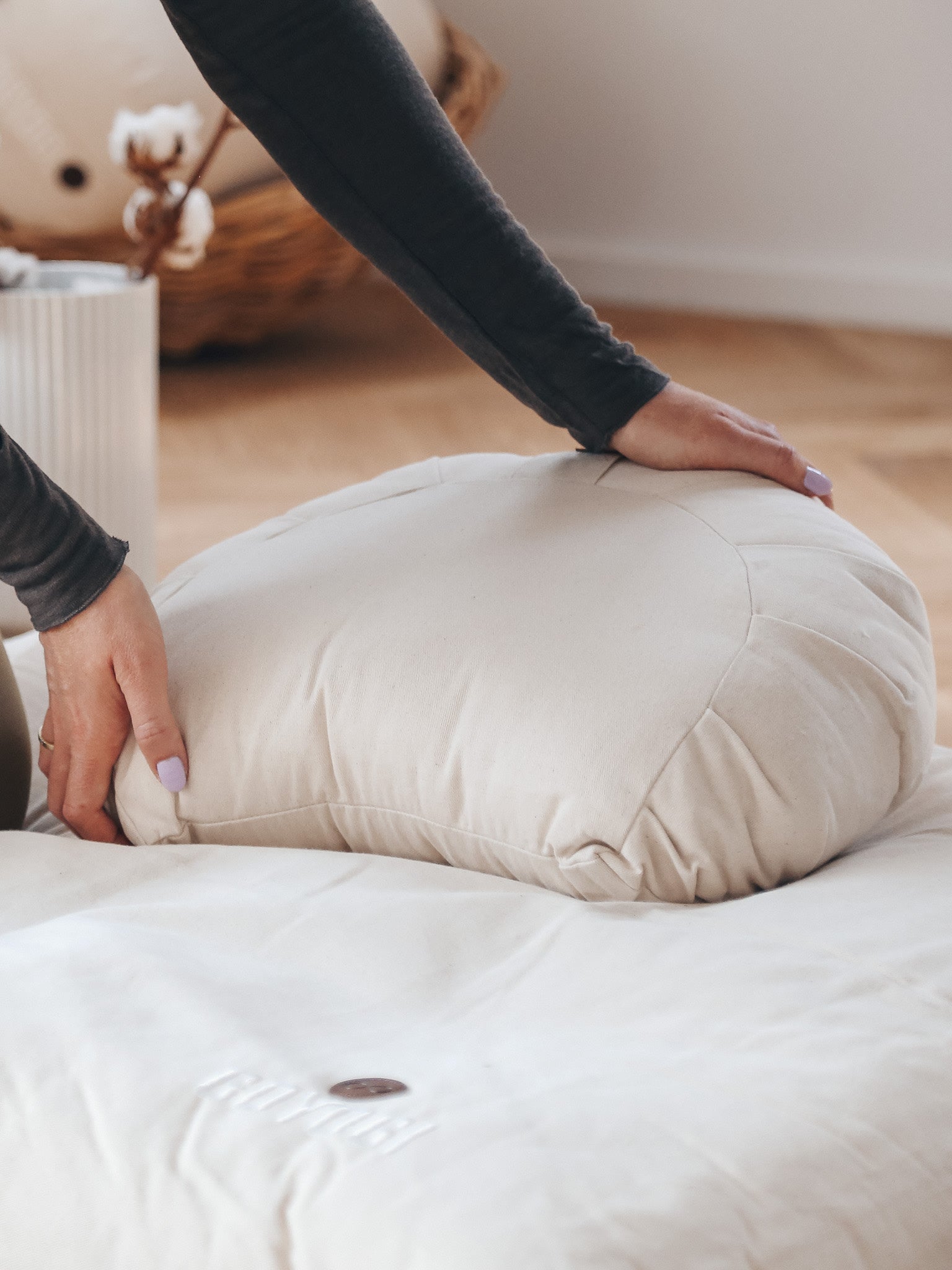 • Zabutonen aflaster knæ, underben og ankler – perfekt som base til længere praksis